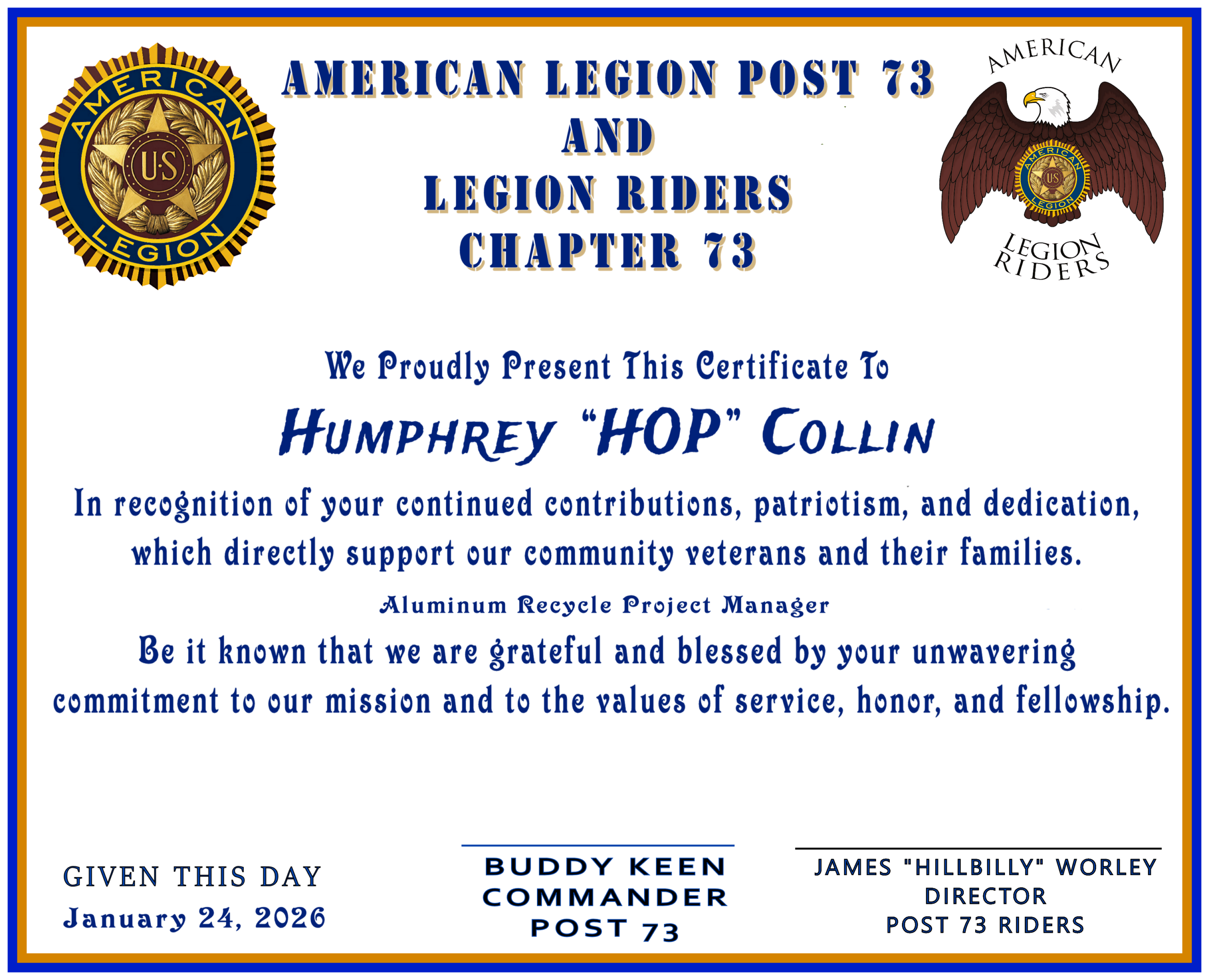 Director, Legion Riders, Cook-Clements Post 73