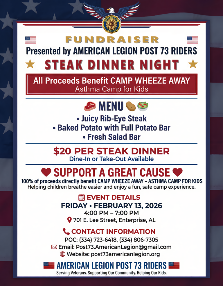 08:30am / 701 East Lee Street Enterprise, AL.