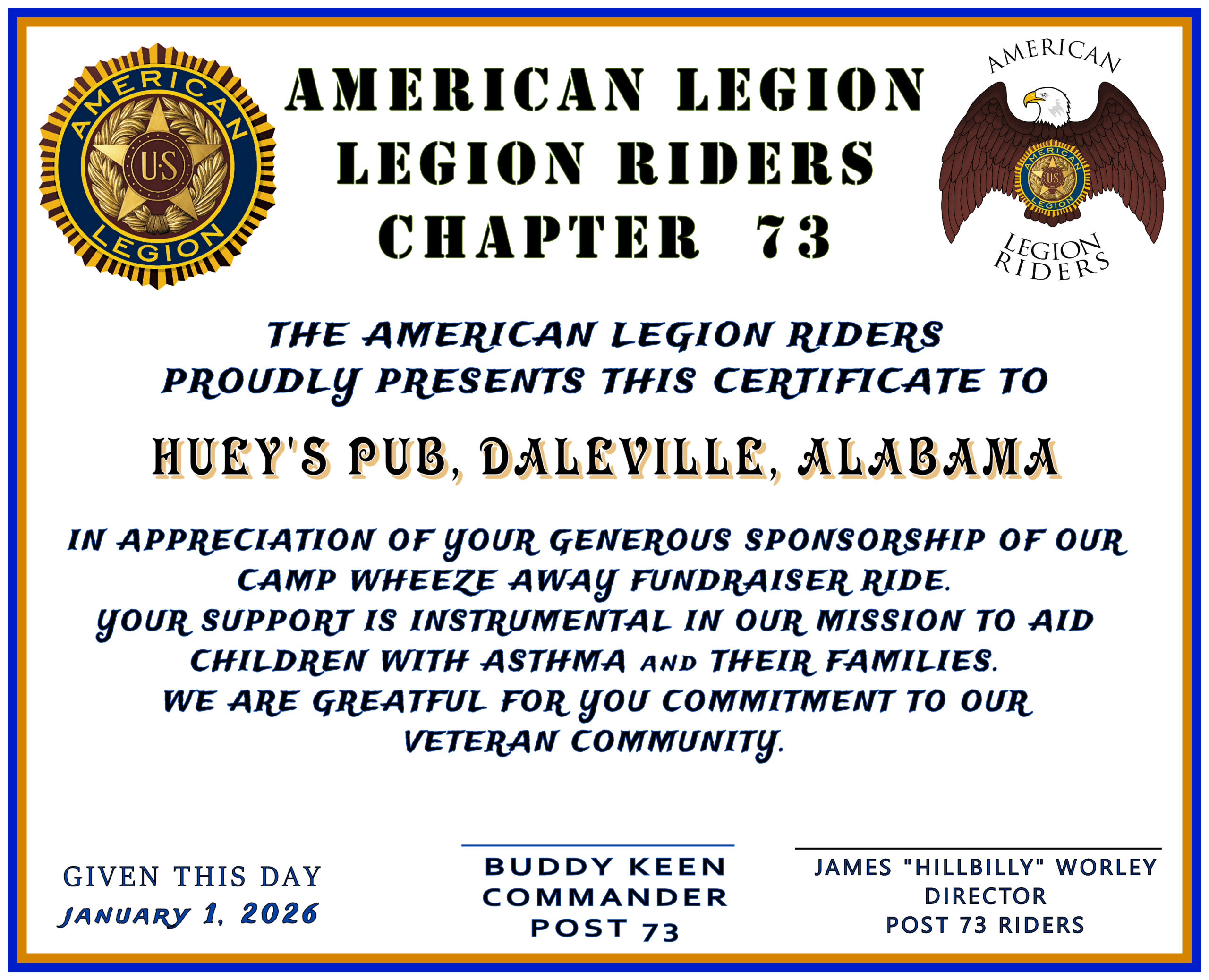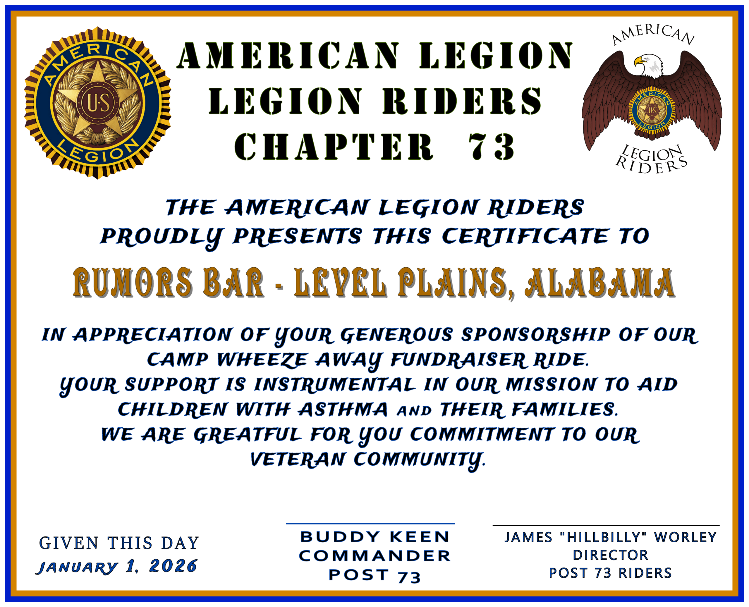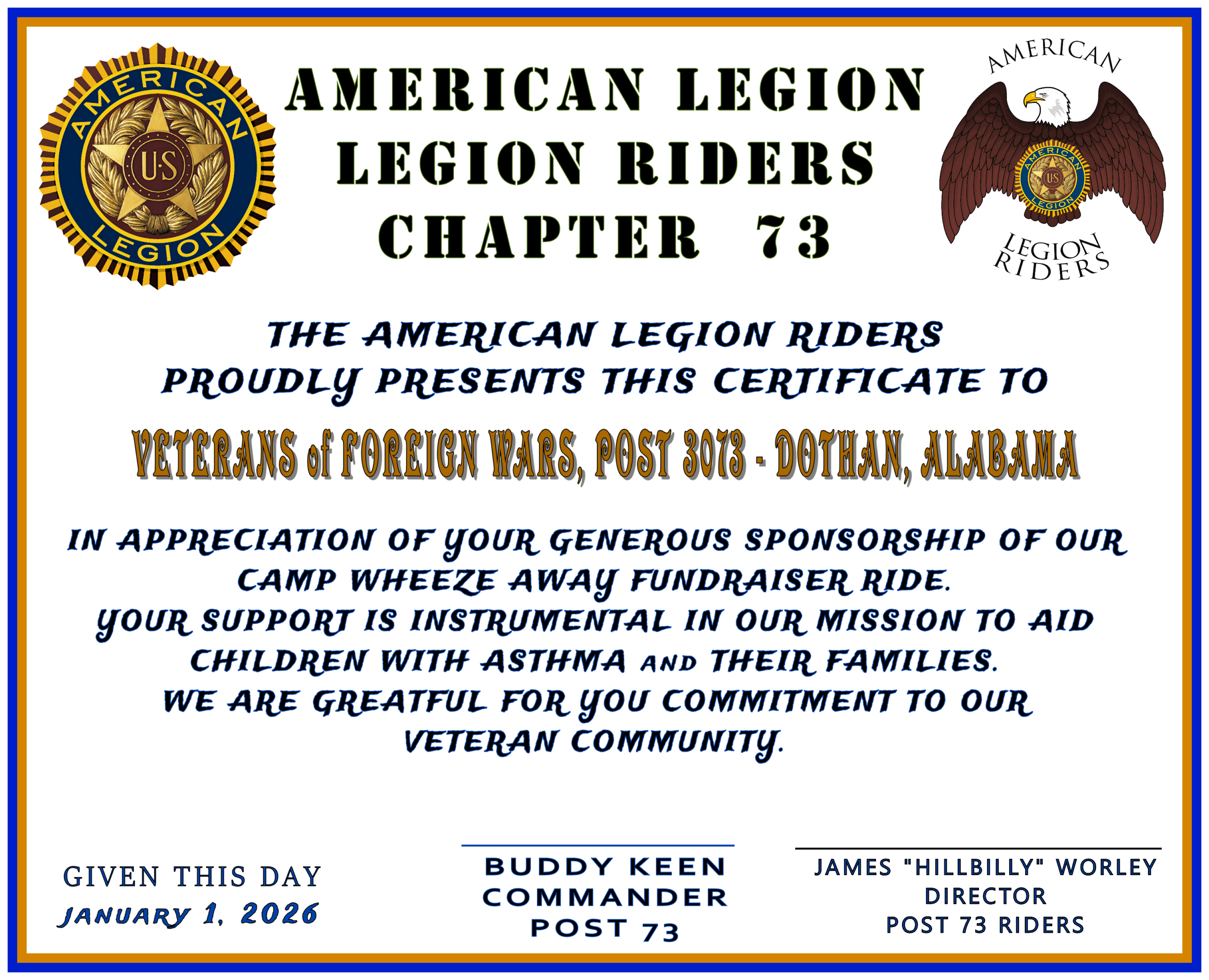 POST 73 PHOTOs & VIDEOs PHOTOs & VIDEOs - POST 73 24 JAN 2026 - MEMBERS MEETING & ALR RIDE OPNS WHEEZE AWAY COOKIES with SANTA 2025 DECEMBER 2025 - COOKIES WITH SANTA 2025 NCAA FOOTBALL at POST 73 HEALTH EDUCATION - EATING PATTERNS by LIZZ DANIELS ANNUAL GERMAN DINNER - OCTOBER 2025 SEPTEMBER 2025 - 9/11 MEMORIAL POKER RUN RETURN to HOME PAGE